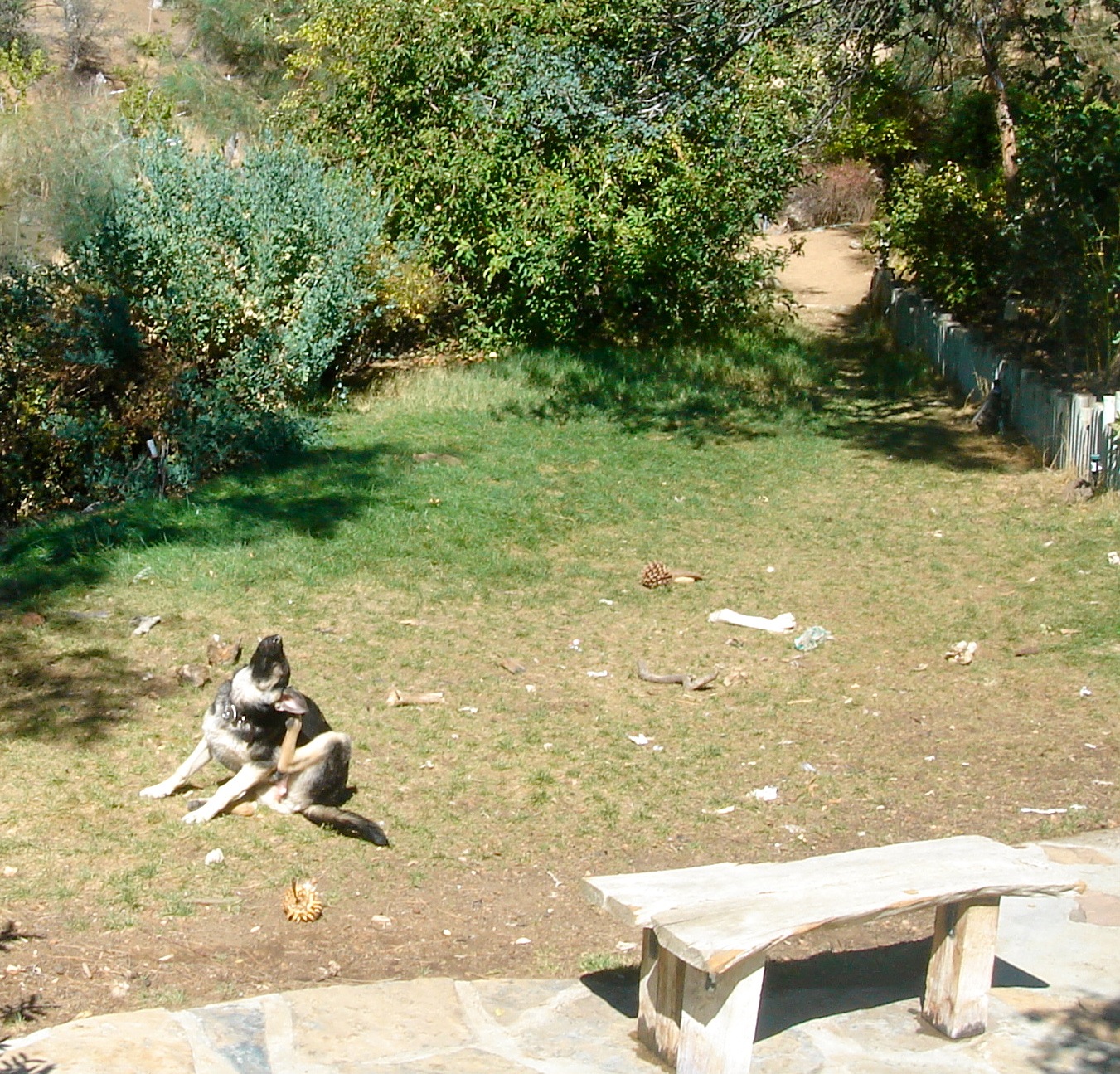 Fresh from my utopian daydream, I returned to my own tattered, scrubby lawn. Once cool and inviting, it now resembles nothing so much as the desert from whence it sprang. As I surveyed the carnage, it occurred to me, it’s not that way from a lack of water, it’s that way from an excess of entitled puppy. Maybe there’s a lesson in there somewhere….