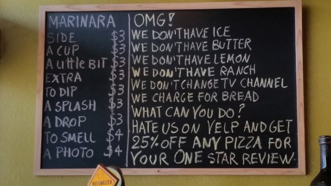Highlighting some of the negative reviews, they put this sign in their window and watched the Yelp reviews come piling in—with hilarious results: