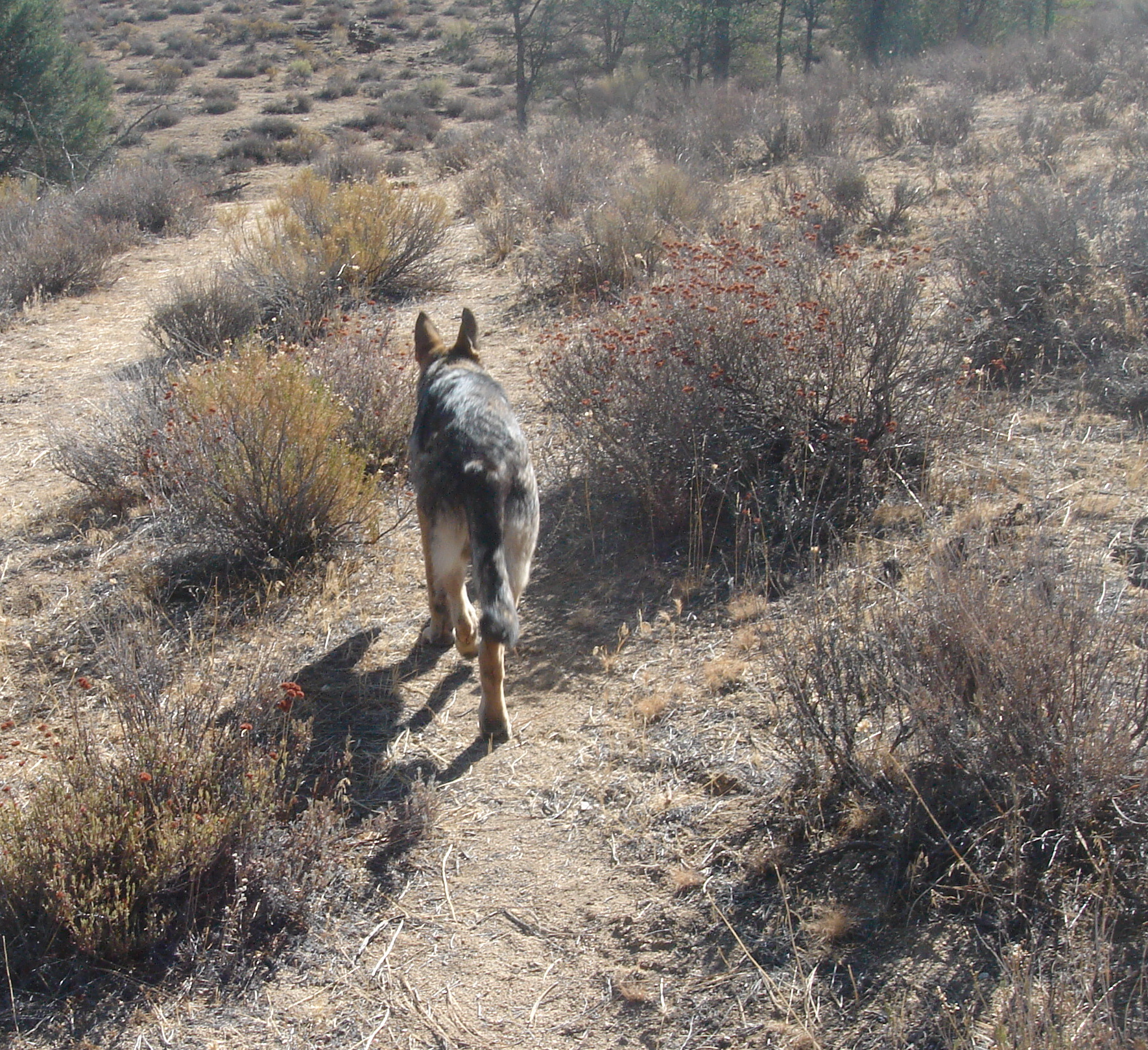 So I bunch up with my mom and everyone, and we all start moving south down the dry creek bed. We’re all excited, but pretty quick we settle down to business and kinda walk-trot down our old paths, past the water holes and washes, over the mountainside and down the dirt tracks, past all our haunts and hangouts. With all the horses, and quads, and dogs, and even the old ratty pick up truck up ahead, it’s kinda like a parade or somethin’.